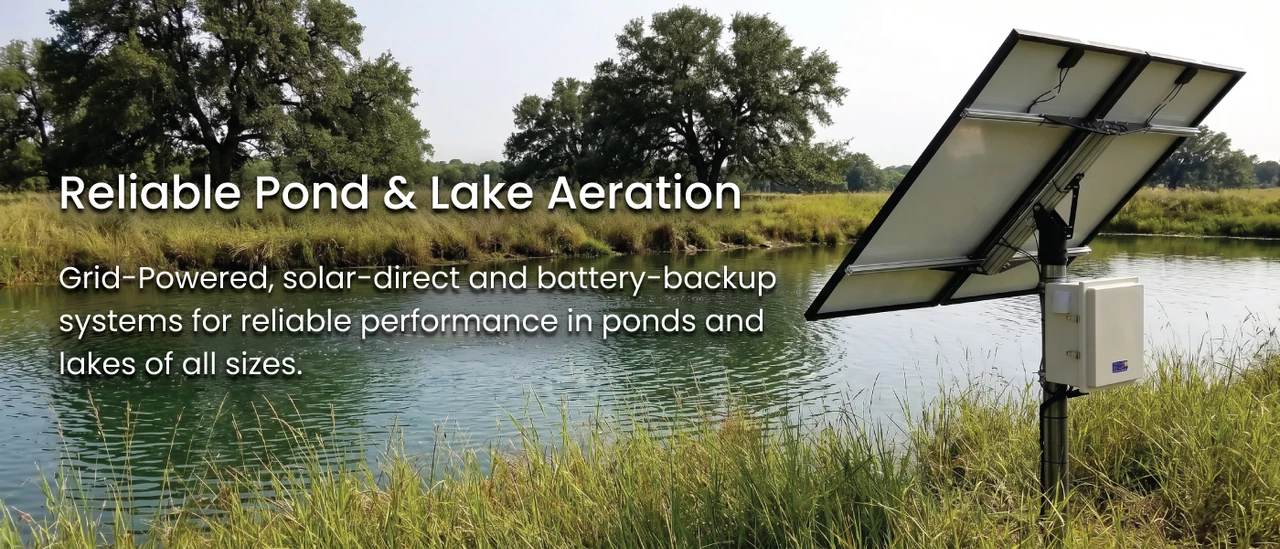 If you need aeration that works without compromise, you’re in the right place. We manufacture premium aeration systems for virtually any application—grid-powered, solar-direct, or with battery-backup —designed for maximum performance and durability.
